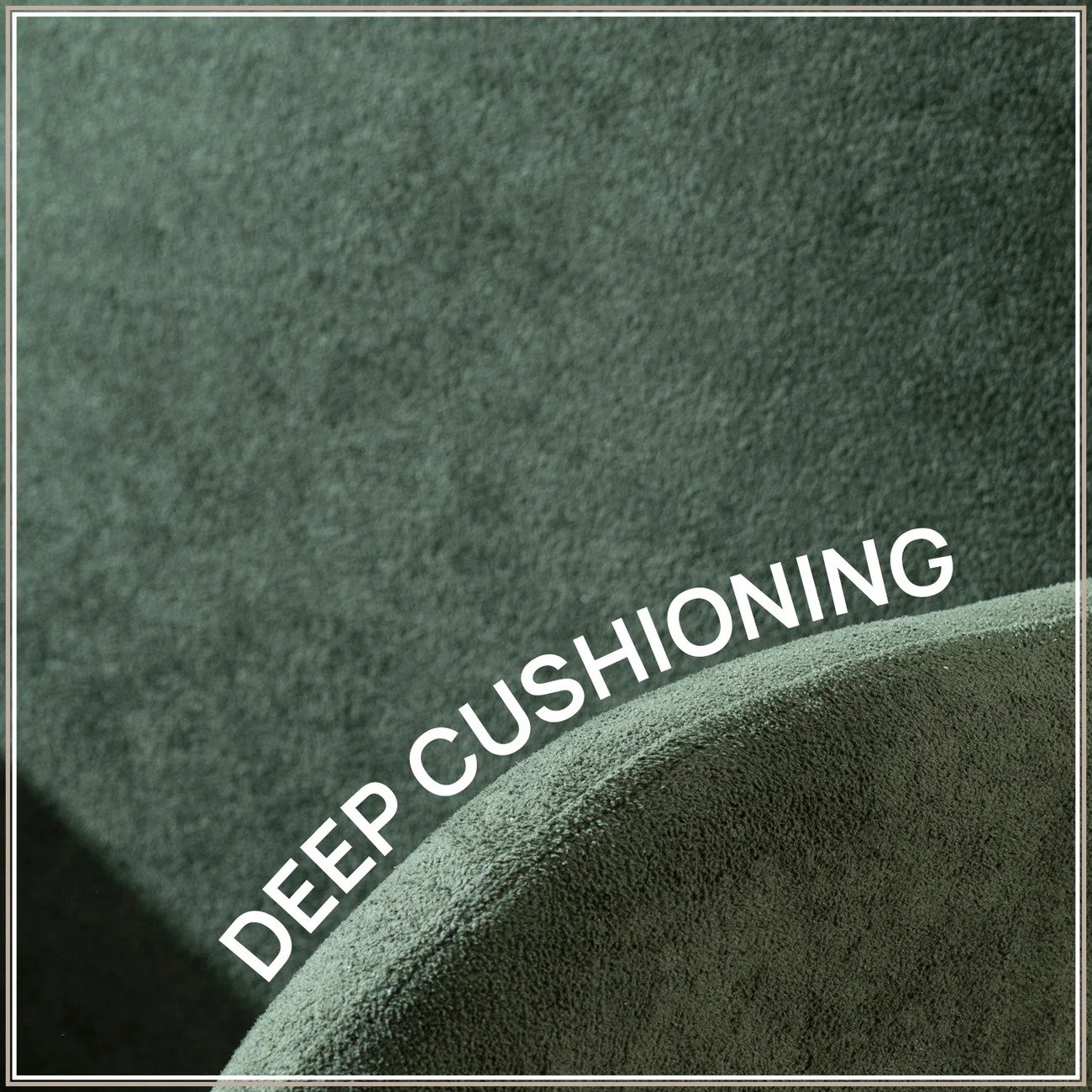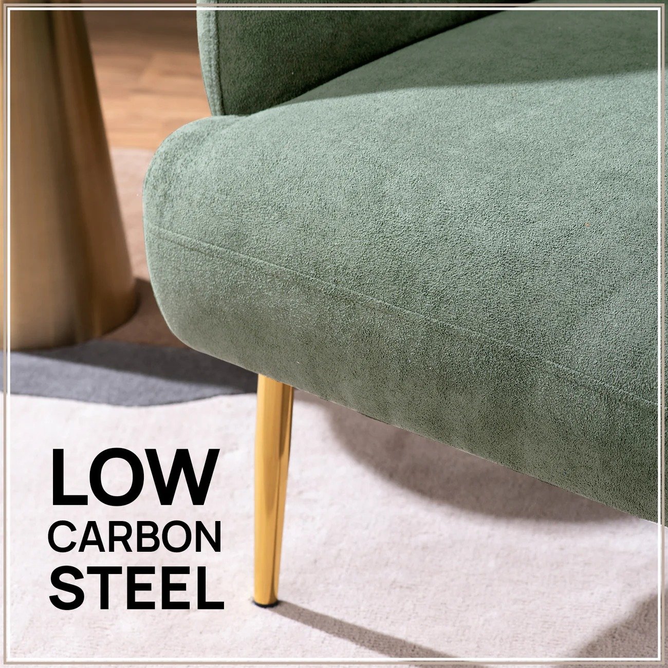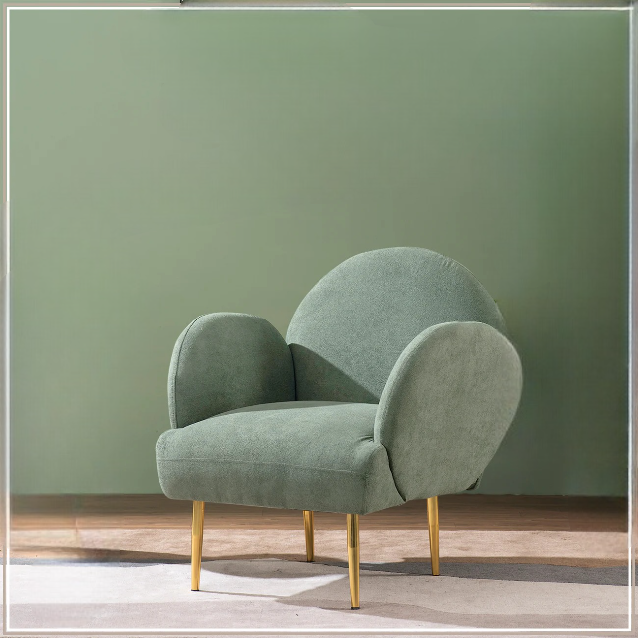 The Mellow Loopback Lounge Armchair is a cozy and stylish home & office chair with a rounded backrest and curved arms, upholstered in soft, green textured boucle fabric. Its elegant design and gold-toned legs make the one-seater sofa chair a perfect addition to any modern space, adding both comfort and sophistication. Designed for easy installation, this lounge chair with sleek armrests and deeply cushioned seating seamlessly combines aesthetics with functionality, enhancing your home or office decor effortlessly.