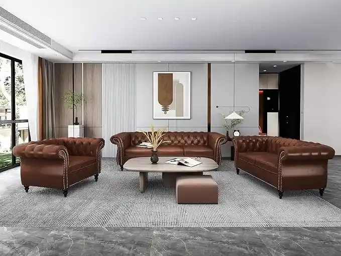 Upgrade your living space with the perfect blend of modern and classic design with this luxurious leather sofa set. Expertly crafted from premium quality leather, this sofa set offers a smooth, soft, and luxurious feel that is both durable and easy to maintain. Its ergonomic design ensures maximum comfort, with plush cushions and a supportive backrest, making it the ideal spot for relaxation or entertaining guests.